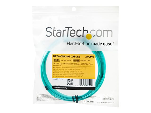 StarTech.com 3m Fiber Optic Cable - 10 Gb Aqua - Multimode Duplex 50/125 - LSZH - LC/LC - OM3 - LC to LC Fiber Patch Cable - Patch-kabel - LC multiläge (hane) till LC multiläge (hane) - 3 m - 3 m - fiberoptisk - duplex - 50/125 mikron - OM3 - halogenfri - havsblå - för P/N: J9152AST, MASFP10GBSR, SFP10GBLRMST, SFP10GBSRST, SFP10GSRSST, SFP10GSRXST A50FBLCLC3