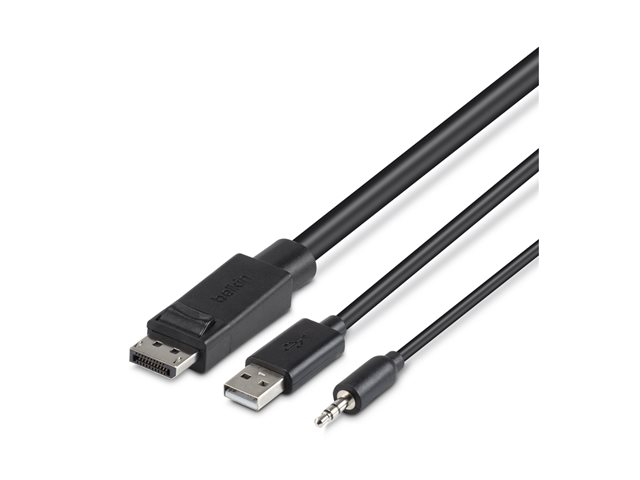 Belkin Secure KVM Combo Cable - Kabel för tangentbord/mus/video/ljud - TAA-kompatibel - USB, minijack, DisplayPort (hane) till mini-phone stereo 3.5 mm, USB typ B, DisplayPort (hane) - 1.83 m - svart