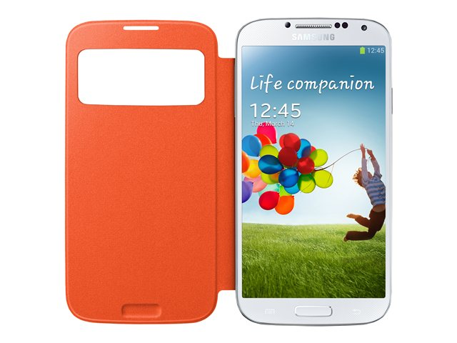 Samsung S View EF-CI950B - Vikbart fodral för mobiltelefon - polyuretan, polykarbonat - orange - för Galaxy S4 EF-CI950BOEGWW