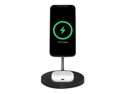 Belkin BoostCharge Pro MagSafe 2-in-1 - Trådlöst laddställ + växelströmsadapter - 15 Watt - Fast Charge - svart - för Apple AirPods; AirPods Pro; iPhone 12, 12 mini, 12 Pro, 12 Pro Max
