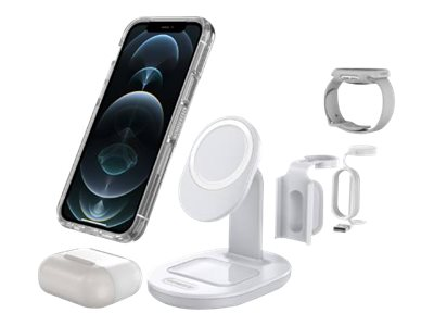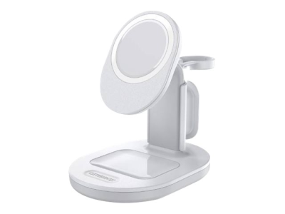 OtterBox - Trådlöst laddställ - 3-i-1 - lucid dreamer, vit, silver - för Apple iPhone 12, 12 mini, 12 Pro, 12 Pro Max, 13, 13 mini, 13 Pro, 13 Pro Max