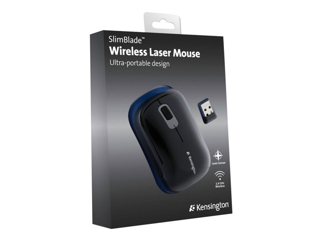 Kensington SlimBlade with Nano Receiver - Mus - laser - trådlös - 2.4 GHz - trådlös USB-mottagare