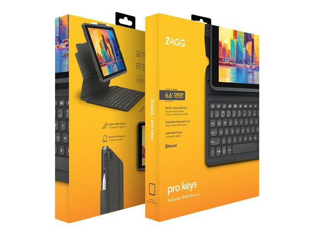ZAGG Pro Keys - Tangentbord och foliefodral - bakgrundsbelyst - Bluetooth - Nordisk - svart/grå tangentbord, svart/grå fodral - för Apple 10.9-inch iPad Air (4:e generation, 5:e generation)