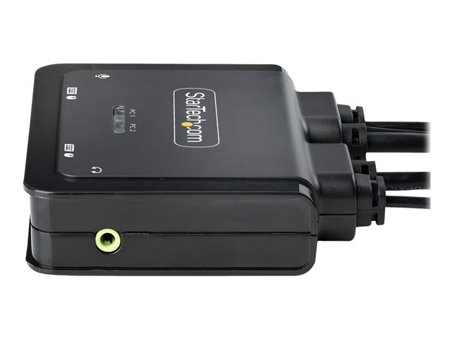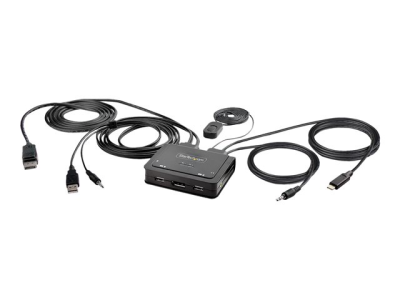 StarTech.com 2-Port Hybrid USB-C DisplayPort Cable KVM Switch, 4K 60Hz, Compact KVM with 6ft/1.8m USB-A/DisplayPort/Audio & 4ft/1.2m USB-C Integrated Host Cables, Bus Powered - Remote Push Button/Hotkey Switching (C2-D46-UAC-CBL-KVM) - Omkopplare för tangentbord/video/mus/ljud/USB - kompakt - 2 x KVM/ljud/USB - 1 lokal användare - skrivbordsmodell