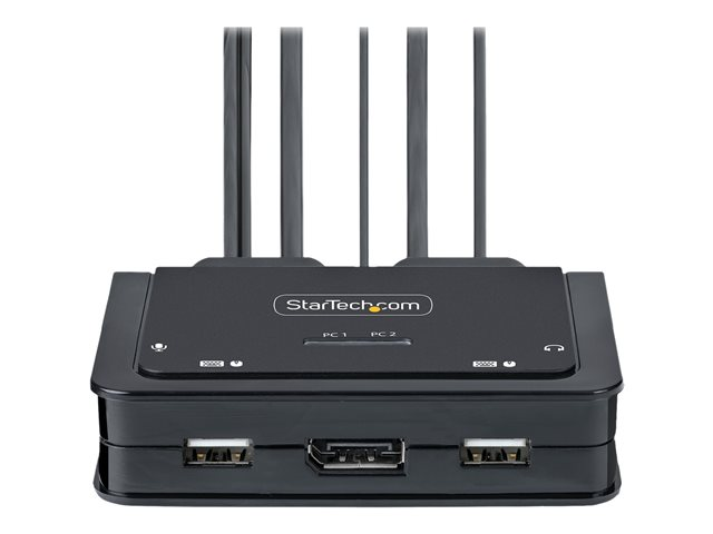 StarTech.com 2-Port Hybrid USB-C DisplayPort Cable KVM Switch, 4K 60Hz, Compact KVM with 6ft/1.8m USB-A/DisplayPort/Audio & 4ft/1.2m USB-C Integrated Host Cables, Bus Powered - Remote Push Button/Hotkey Switching (C2-D46-UAC-CBL-KVM) - Omkopplare för tangentbord/video/mus/ljud/USB - kompakt - 2 x KVM/ljud/USB - 1 lokal användare - skrivbordsmodell C2-D46-UAC-CBL-KVM