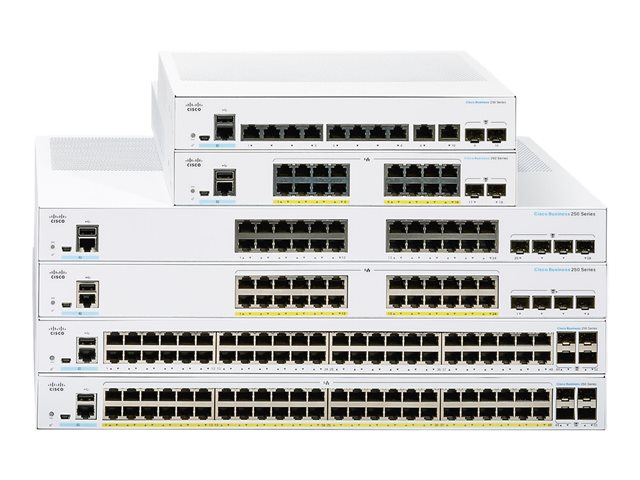 Cisco Business 250 Series är nästa generation av prisvärda smarta switchar som kombinerar kraftfull nätverksprestanda och tillförlitlighet med en komplett uppsättning av de nätverksfunktioner du behöver för ett stabilt företagsnätverk. Dessa kraftfulla Gigabit Ethernet-switchar, med Gigabit eller 10 Gigabit Ethernet uplinks, ger flera hanteringsalternativ, sofistikerade säkerhetsfunktioner och finjusterad Quality of Service (QoS) och Layer 3 statisk routing funktioner långt utöver vad en oadministrerad eller konsumentklass switch, till en lägre kostnad än för fullt hanterade switchar. Och med ett lättanvänt webbgränssnitt och Power over Ethernet Plus (PoE+)-funktion kan du driftsätta och konfigurera ett komplett företagsnätverk på några minuter.