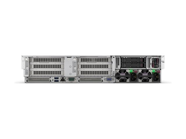 | Gränssnitt | 1 x HPE iLO (1 på framsidan) (service port) 5 x USB 3.1 Gen 1 (1 fram, 2 bak, 2 interna) 1 x VGA 4 x LAN (Gigabit Ethernet) |