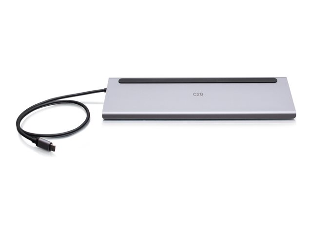C2G USB-C 10-in-1 Triple Display Docking Station with HDMI, DisplayPort, VGA, Ethernet, USB, SD Card Reader, 3.5mm Audio and Power Delivery up to 100W - 4K 30Hz - Dockningsstation - USB-C - VGA, HDMI, DP - 1GbE