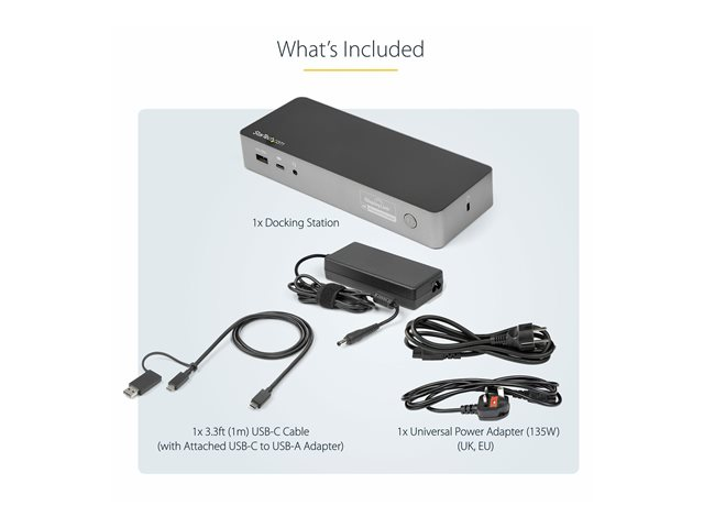 StarTech.com USB-C- och USB-A-dockningsstation - hybrid universell dockningsstation för bärbar dator med dubbelskärm för 4K vid 60 Hz samt HDMI och DisplayPort - USB 3.1 Gen 1-hubb, GbE - strömförsörjning på 60 W - Windows, Mac och Chrome - dockningsstation - USB-C - 2 x HDMI, 2 x DP - 1GbE